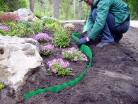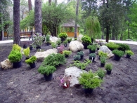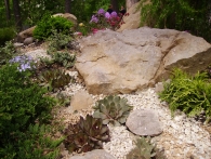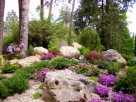 Для этого нами был выбран крымский камень - песчаник и миниатюрные почвопокровные многолетние, а также хвойные растения. Декоративность альпинария сохраняется на протяжении всего сезона и радует владельцев участка своей гармоничностью.