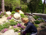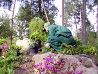 Идею создания альпийской горки в этом месте подсказал сам ландшафт. В итоге дизайнерами было удачно обыграно возвышение рельефа и организован альпинарий. Подбор материалов и растений был обусловлен задачей максимально приблизиться к природным скальным пейзажам и перенести неповторимую атмосферу гор.