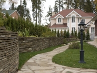 Подпорные стенки ставят также при желании подчеркнуть неровности рельефа,